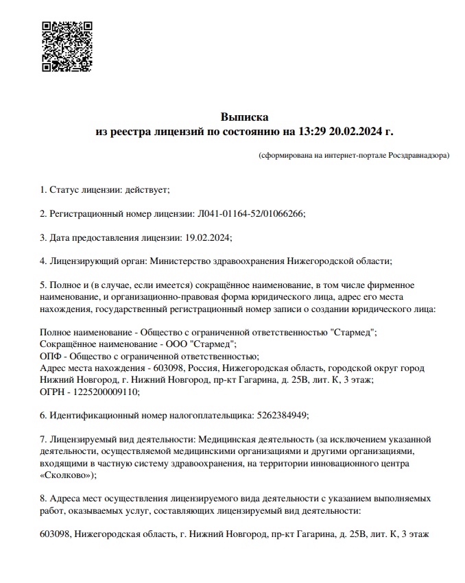 лицензированная медицинская деятельность;